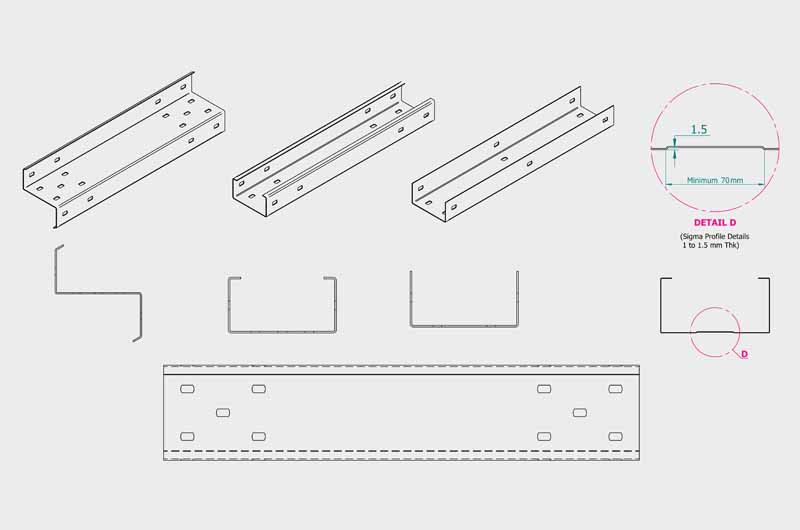 Eave struts are angled beams connecting the roof and walls at the building corners. Featuring an asymmetrical C-shape, these beams follow the roof slope on the top side, while the bottom is broader for enhanced strength, complete with reinforcing lips for extra durability.